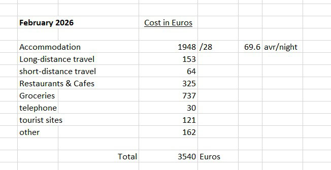 I accounted for all of our costs in February. I’ve done it for myself but I hope it helps those wondering what things cost in Spain (especially in the off season).