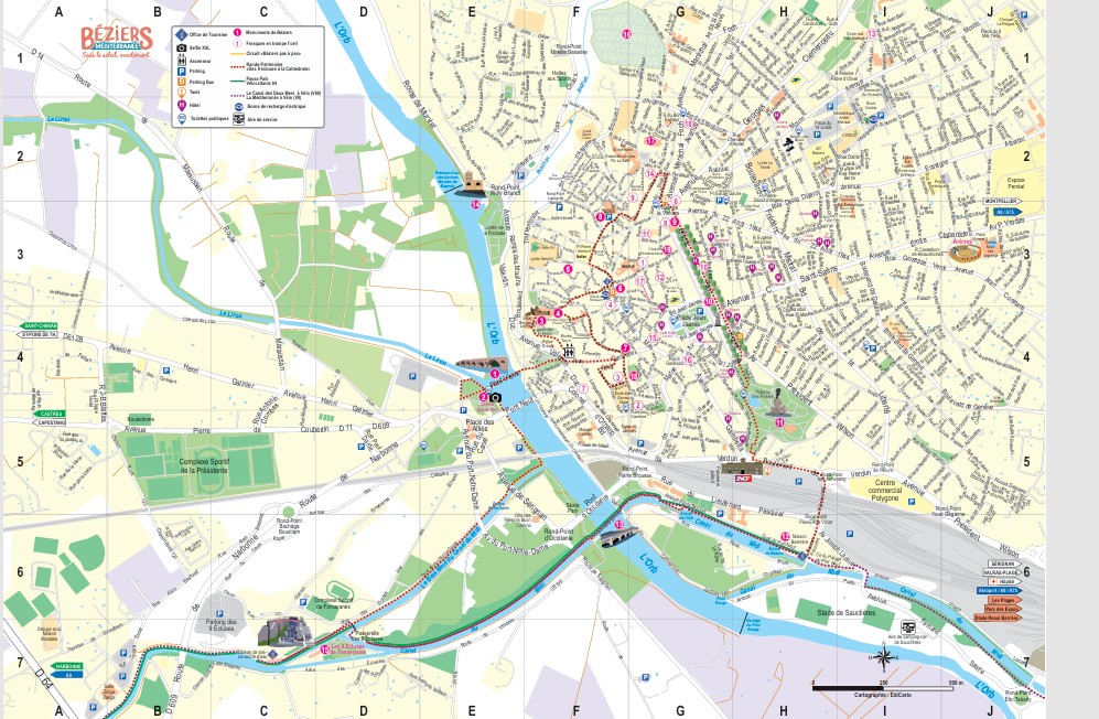 Attached is a full-scale map of Béziers (just click on it to see the whole thing)