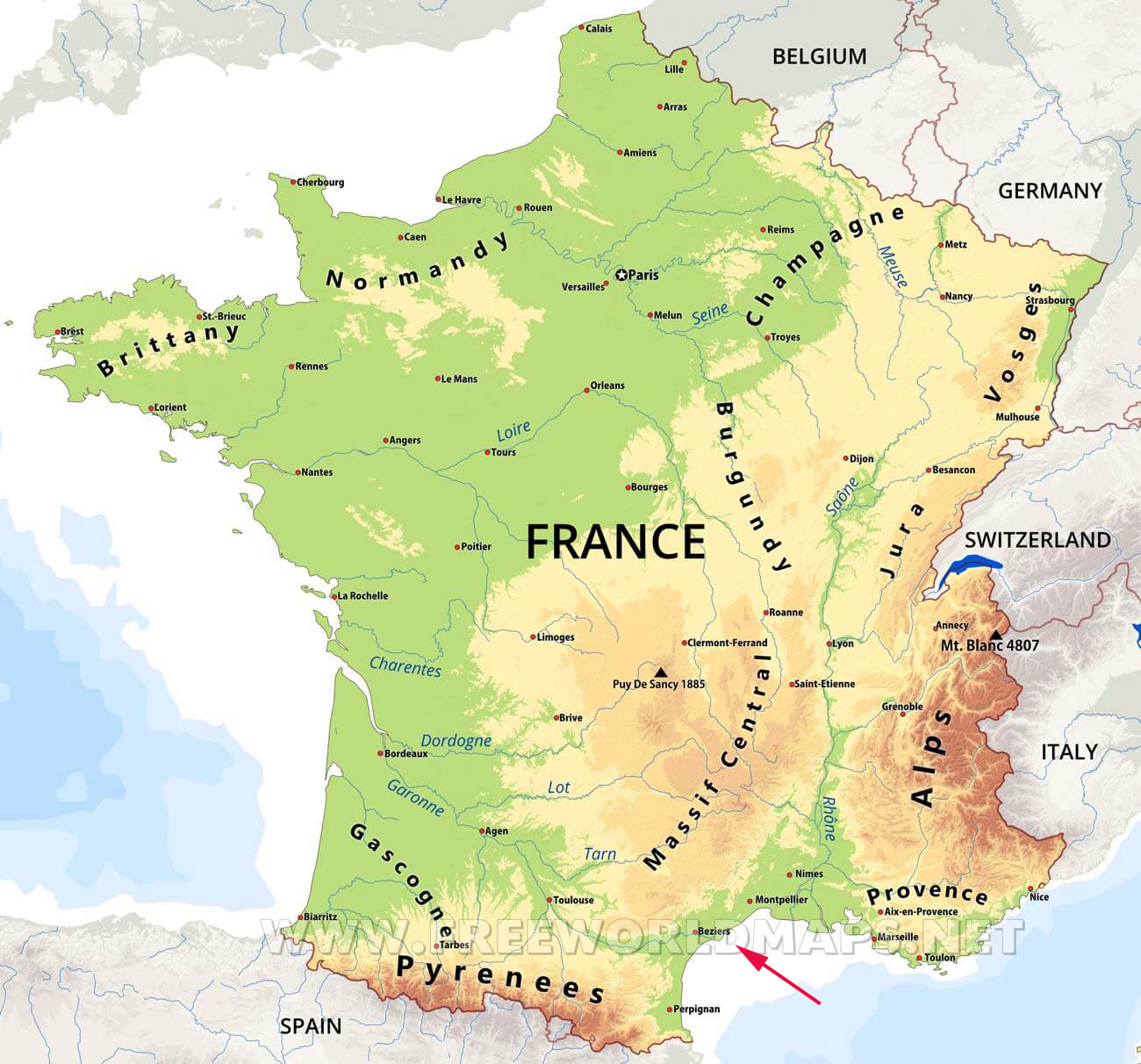 *the region is strategically placed at a crossroads between east-west and north-south, situated in a fertile valley on the Orb river and just 10 km from the Mediterranean. During Roman times wine was exported to Rome from Béziers.
